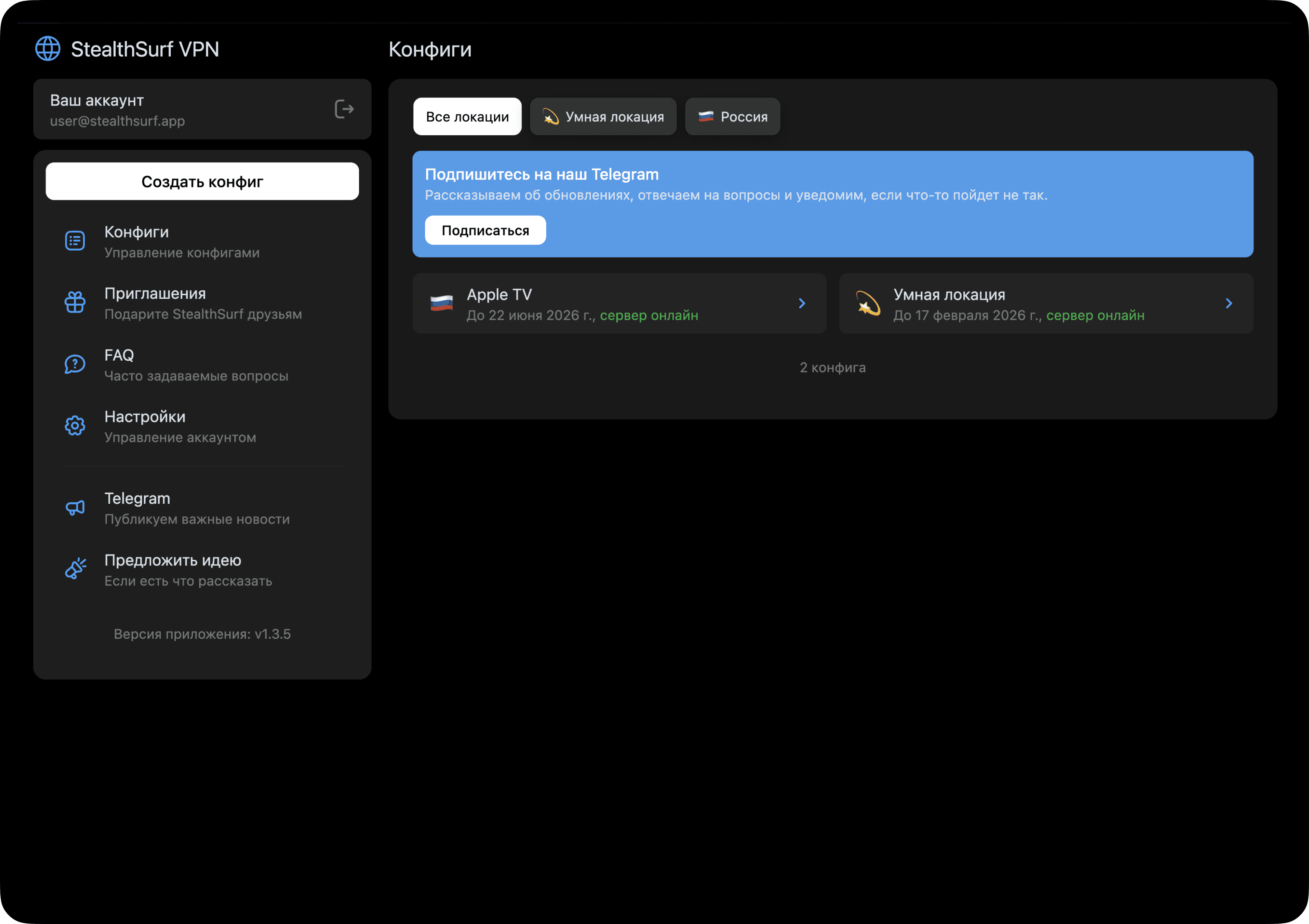 Вы получаете конфиг — файл с настройками, который позволяет вашему устройству подключаться к VPN-серверу через выбранный протокол. Он содержит все необходимые параметры для обеспечения безопасного и анонимного соединения.